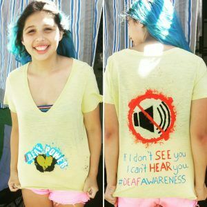 For Allie, the clothing has/have a practical element too, “I didn’t want people to think I was rude if they spoke to me and I didn’t respond. I’m not being rude, I just couldn’t hear them. By making them aware that I was deaf, it helped a lot.”