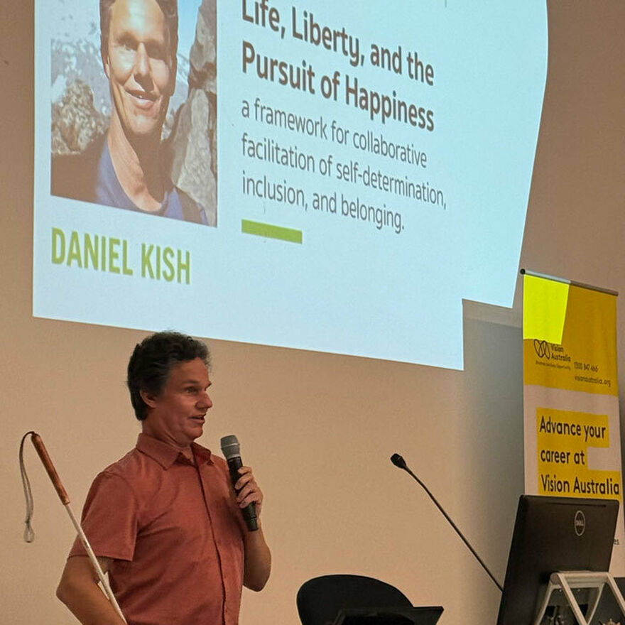 Conference keynote speaker Daniel Kish is Managing Director of World Access for the Blind and an orientation and mobility specialist. As well as addressing the delegates, Daniel joined the NextSense Institute podcast to speak about creating a framework for self-determined freedom.